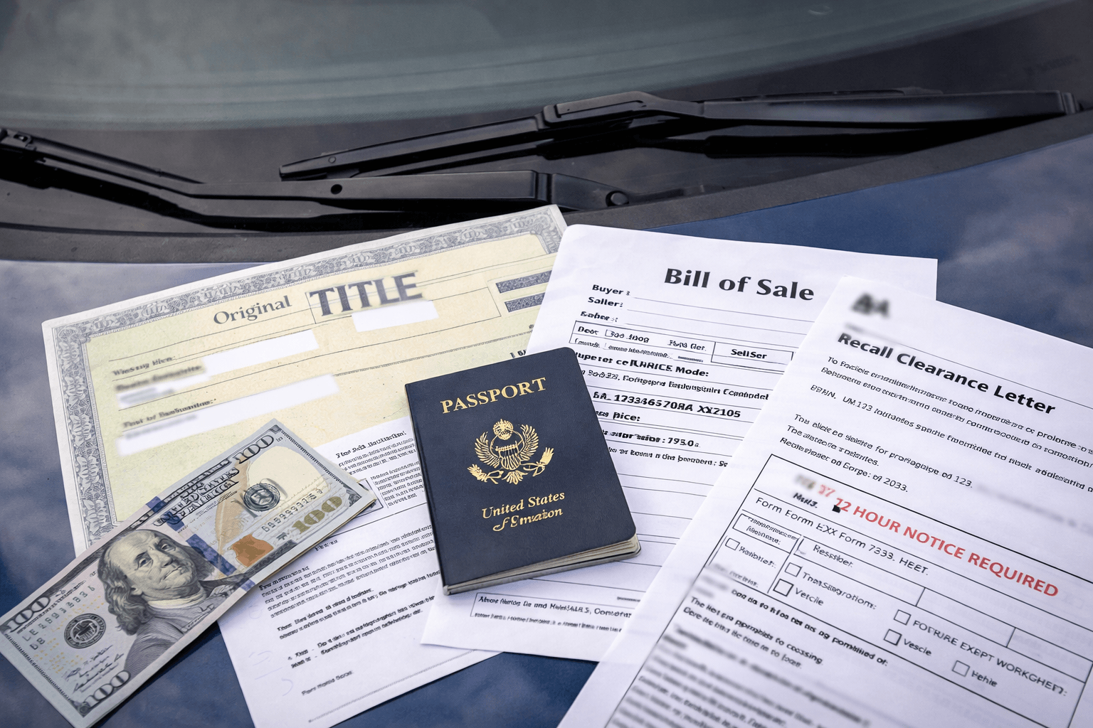 - Original vehicle title – proves ownership and is required for US export approval
