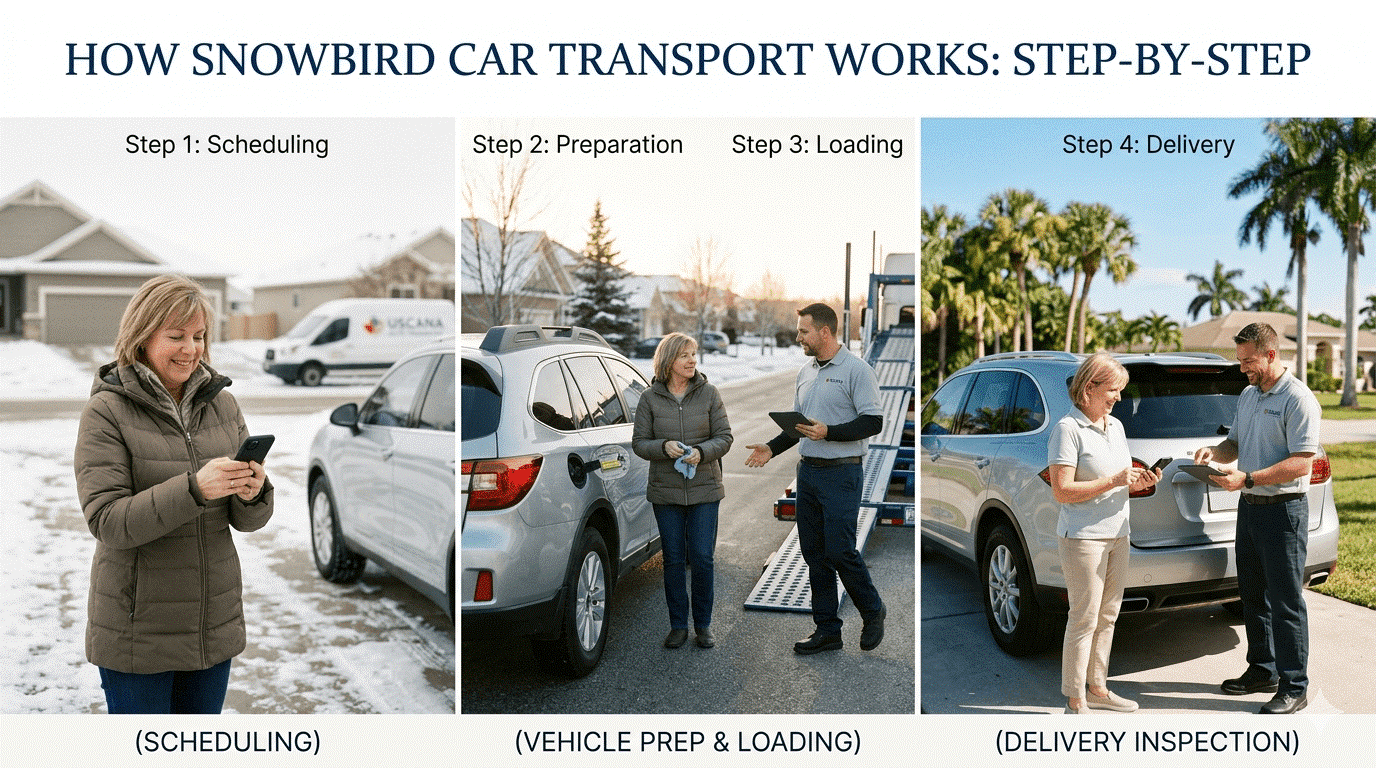 How snowbird car transport works step by step